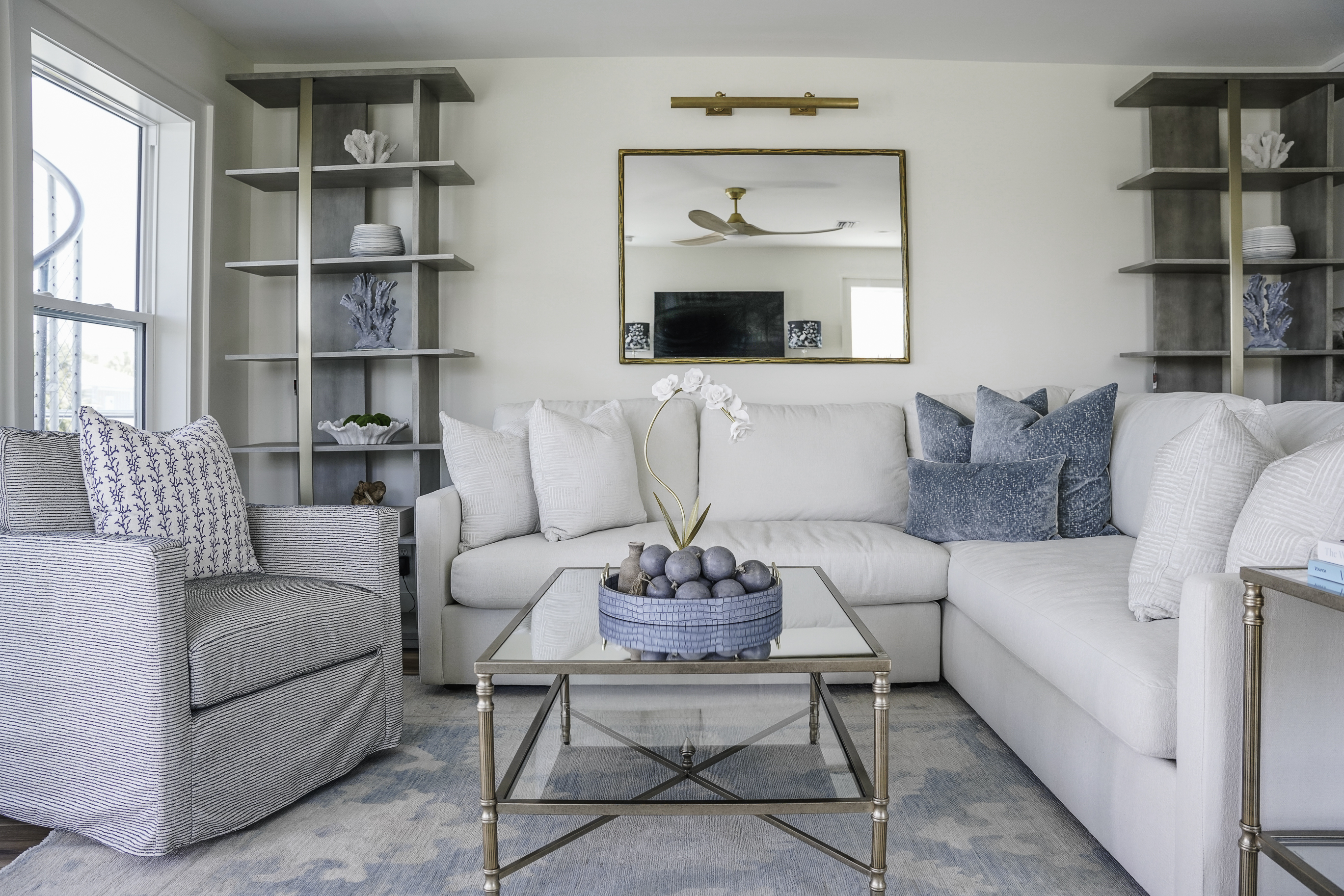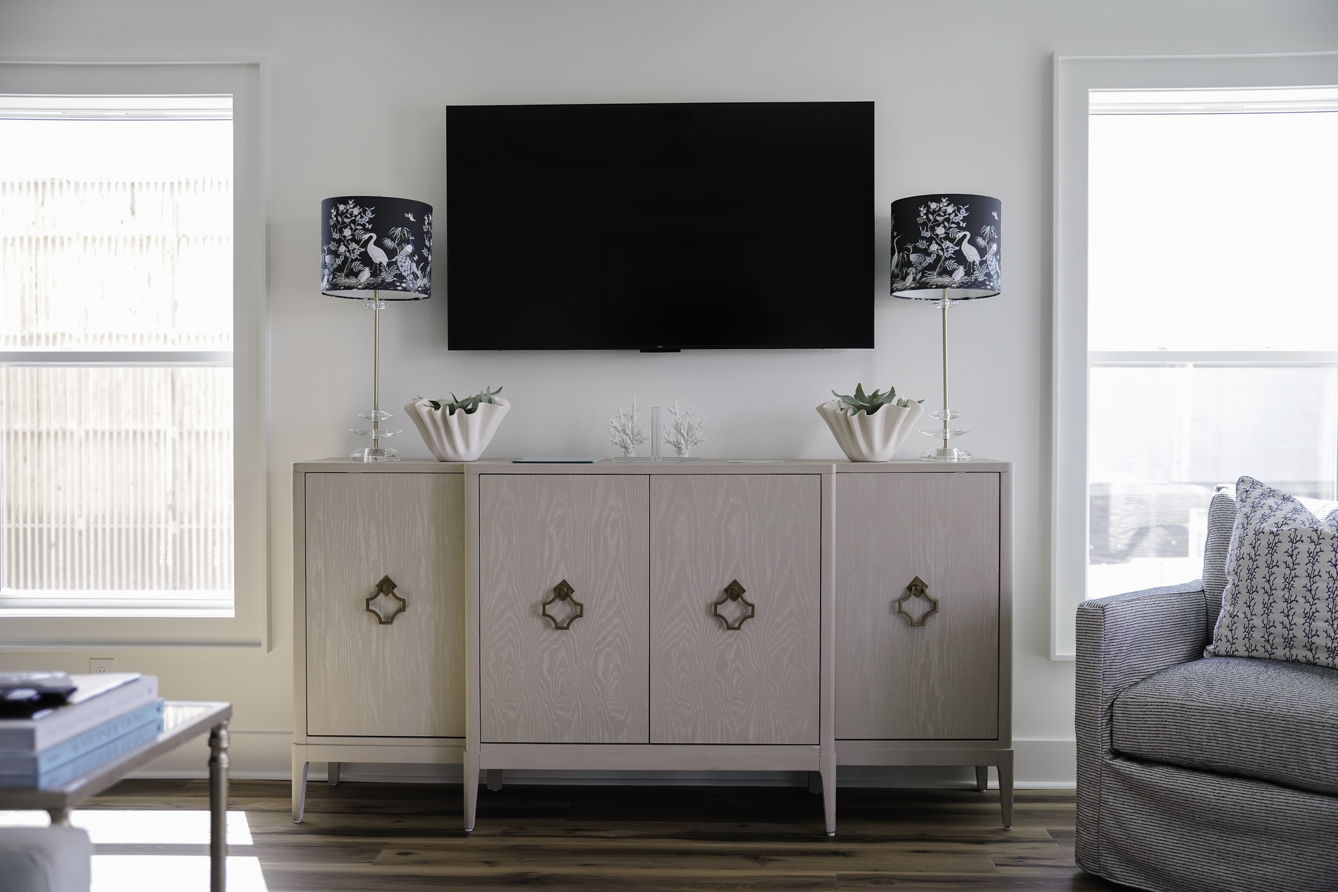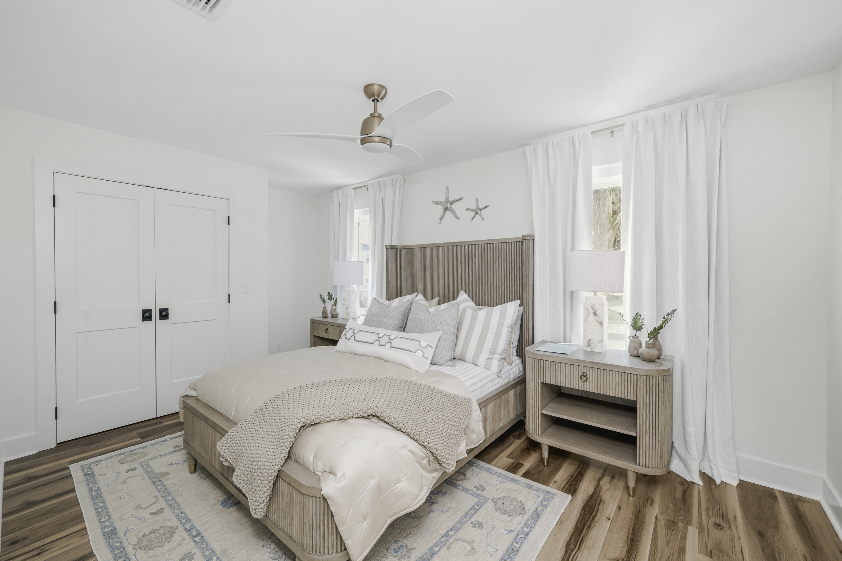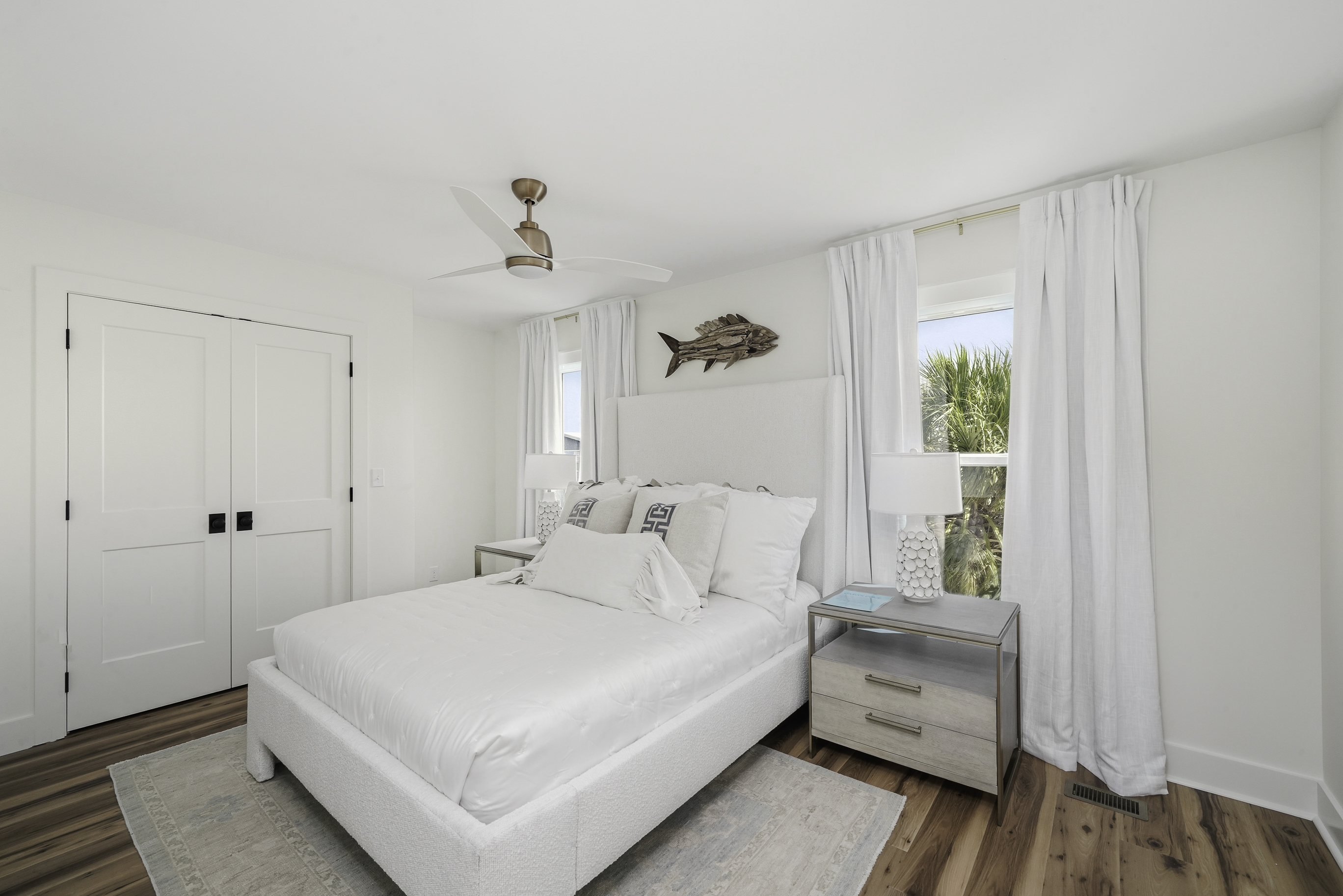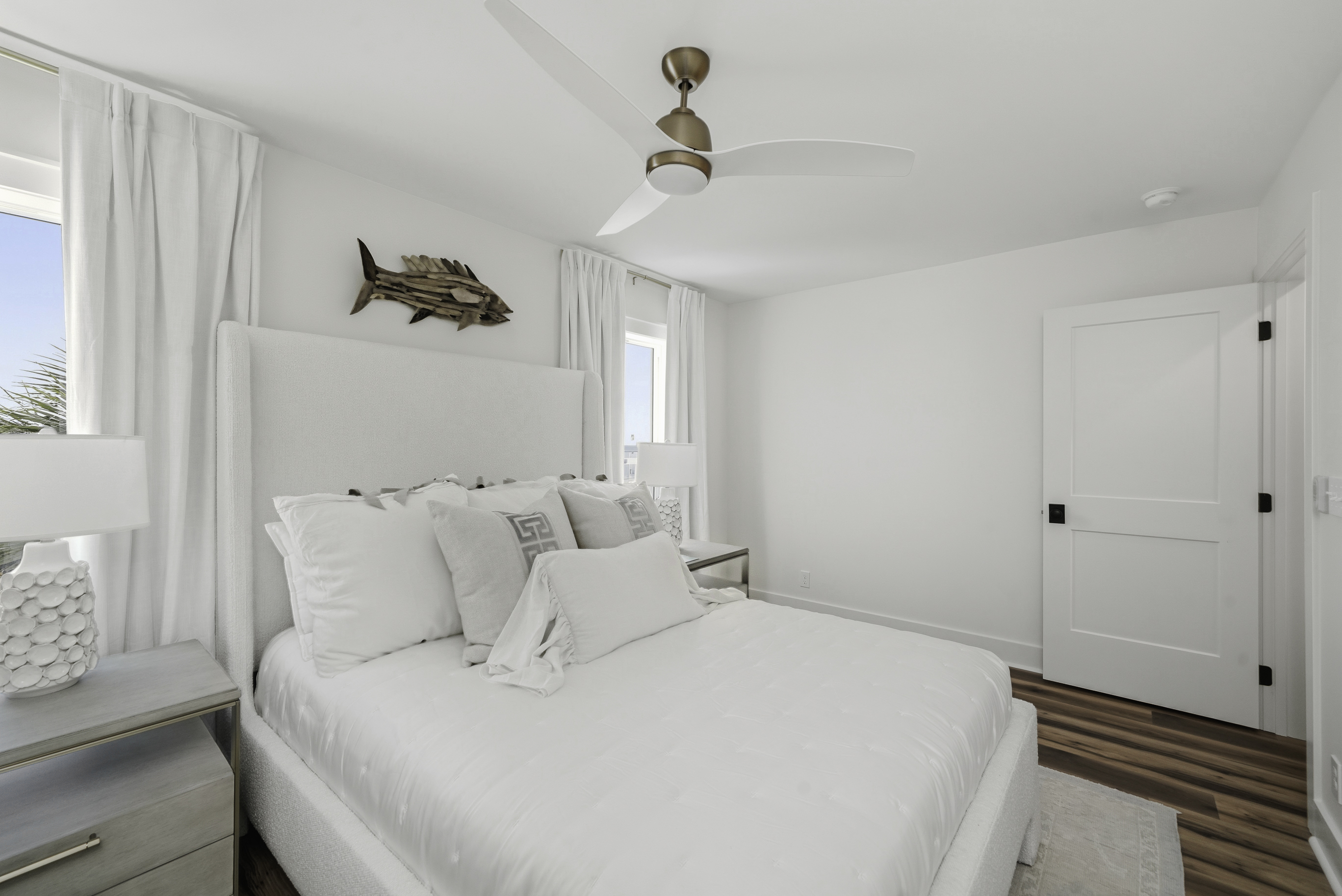 Thoughtfully decorated with a fresh coastal aesthetic, the home welcomes you with an inviting main living area filled with natural light. The living room features a large sectional and smart TV with high-speed internet, creating a comfortable place to unwind after a day spent enjoying the beach.
