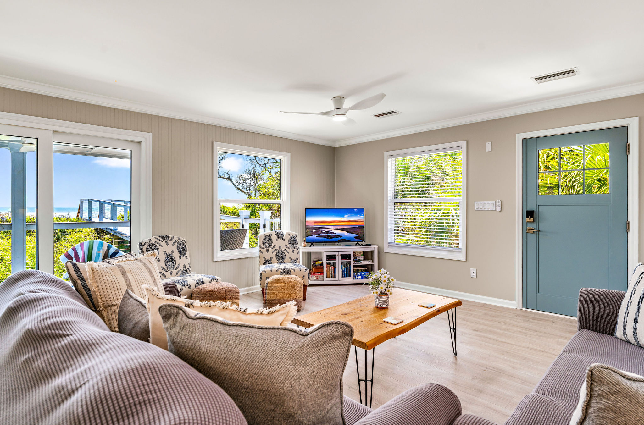 As you step outside, you're greeted by the warm embrace of the sun and the inviting sands less than 25 yards away. The beaches here are pet-friendly, so don't forget to bring along your furry friend (just remember the leash!). Wander along miles of stunning coastline, try your hand at shelling, or launch your canoe for an adventure on the gentle waters. You'll encounter a vibrant array of wildlife, from majestic eagles soaring overhead to playful marine life gliding through the pass.