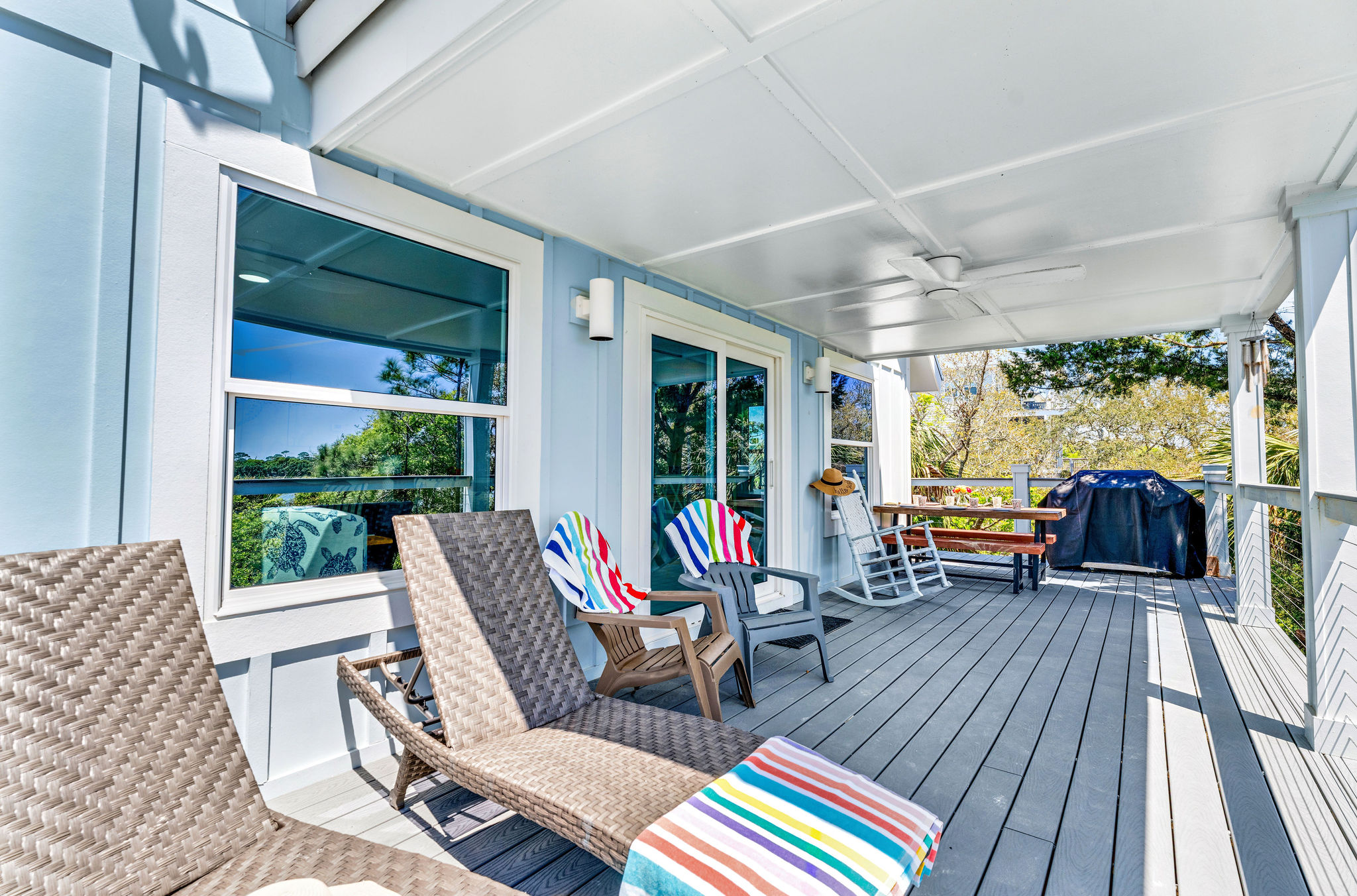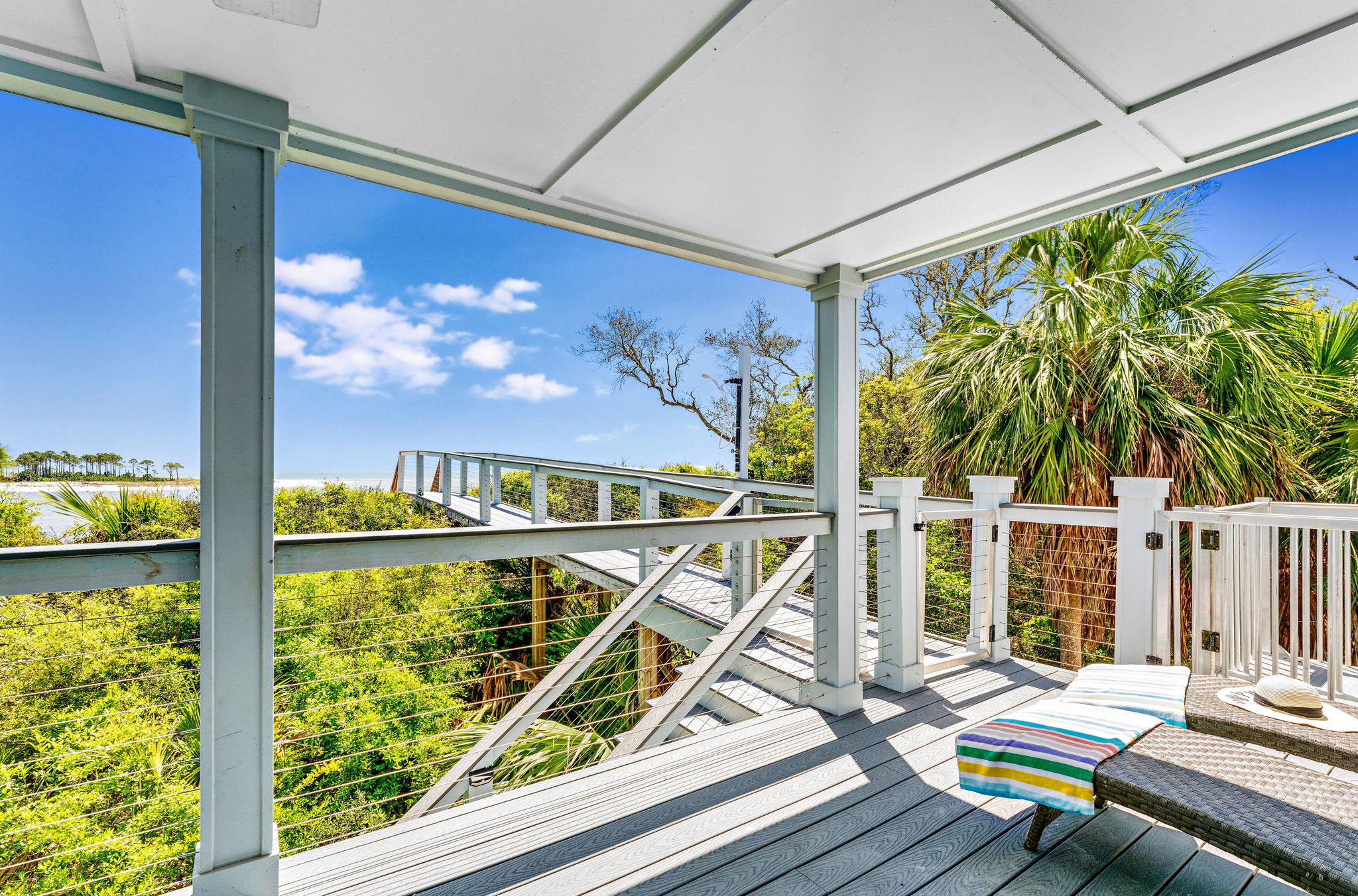 Grab your favorite drink and soak up the sun on one of two Gulf-facing decks, ideal for birdwatching or simply enjoying your slice of paradise. The upper deck is particularly special — perfect for private sunbathing, it offers spectacular views of the Pass, the Gulf, and the protected wildlife preserve of Saint Vincent Island. Once the sun dips below the horizon, get ready for stargazing that will leave you breathless — the night sky here is simply magical.