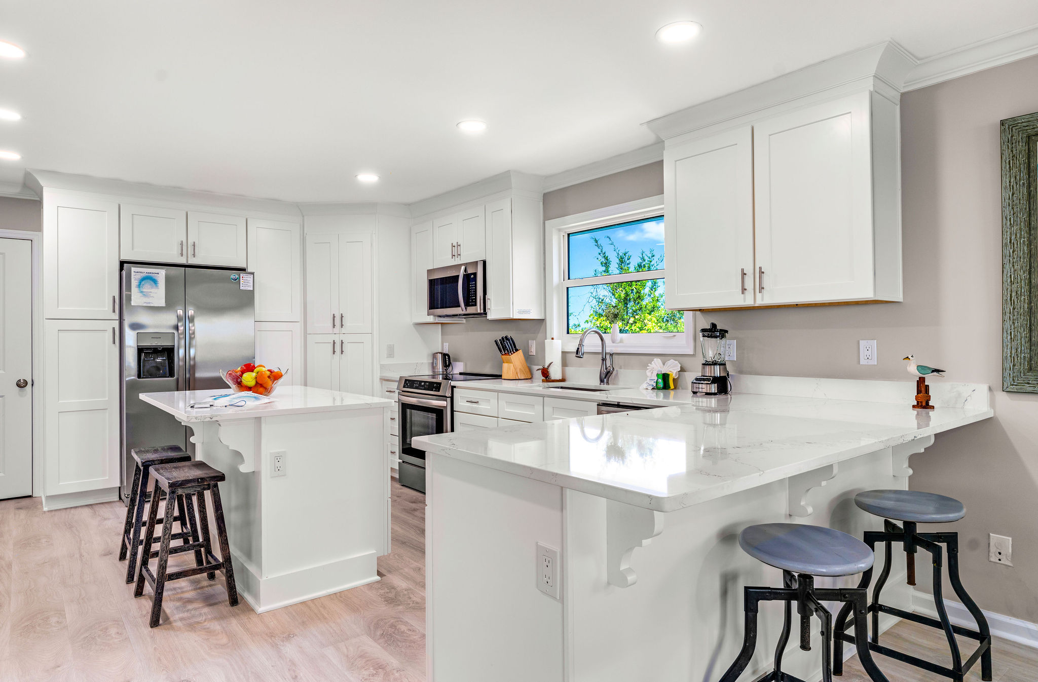 Inside, the layout embraces comfort and functionality. The main floor features a spacious king bedroom with an attached bath, perfect for restful nights. Upstairs, two additional guest rooms await, each with their own water views of either the serene Lagoon or the lively Pass. Here's the cozy setup awaiting you: